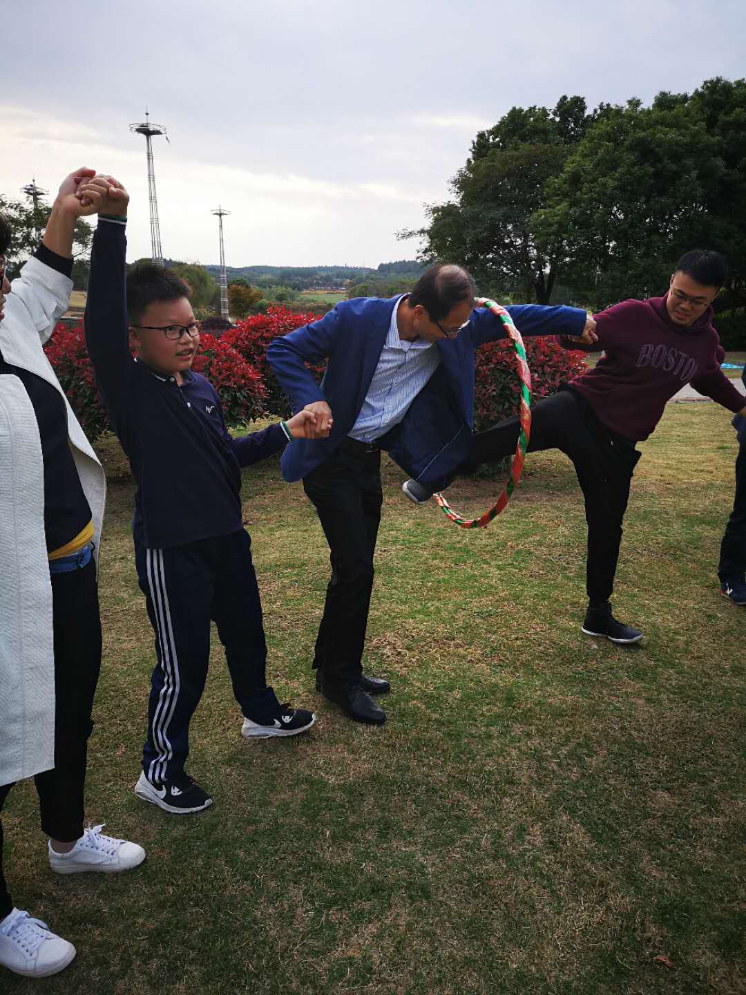 在“一圈到底”活动中,全院教师分为四组,每组8名队员,队员们手牵着手成一排站立,依次穿过同一个呼啦圈,在传递过程中,始终不能松开牵着的双手。经过三轮激烈的角逐,冠军队伍以默契的配合胜出。大桥过河活动更是收获了很多欢乐。自由组合的4人小队为参赛单位,每队使用纸板作为“渡河”的工具。有的队伍收放纸板整齐划一,有的队伍则状况频出,笑声不断。