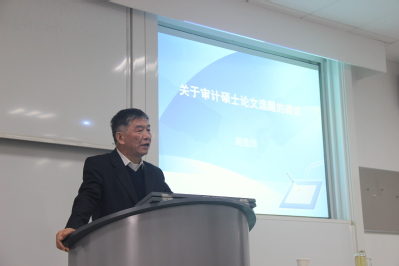 最后,周维培针对论文选题给同学们提出了两点具体建议:首先要未雨绸缪选好题,培养自己的研究兴趣并穷尽相关的文献资料,关注审计工作和理论前沿;其次要精心提炼做好题,对现实存在的审计现象进行解释,题目不可以过大。