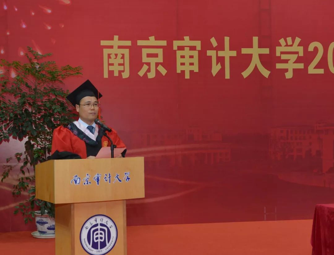 王会金副校长寄语毕业生。希望同学们仰望星空、脚踏实地、坚守底线。毕业后仍然要有理想、有梦想、有目标、严要求;要有责任心、不断坚持、吃苦奋斗、付诸行动;要坚守做人的底线、职业底线、审计人的底线。