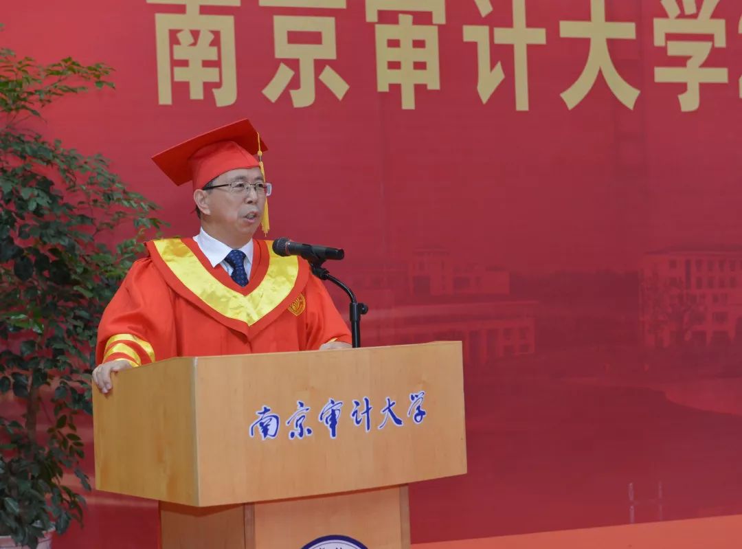副院长王士红教授宣读《关于同意授予政府审计学院2019届包翰林等121名研究生硕士学位的决定》《关于同意授予政府审计学院2019届王雪茹等315名本科毕业生学士学位的决定》《关于同意授予政府审计学院2019届王玥等12名本科毕业生荣誉学士学位的决定》。