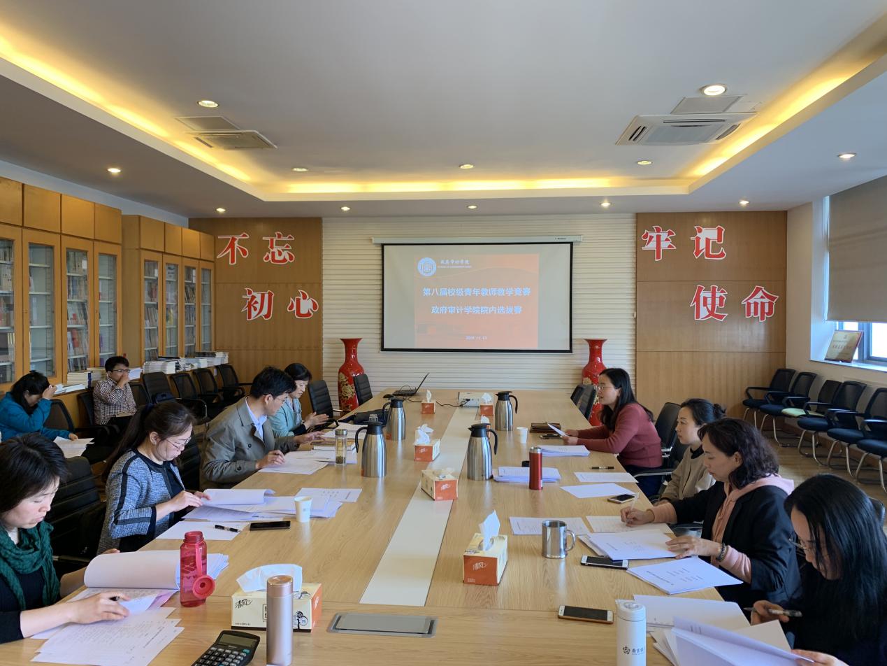 11月13日下午,h漫画 第八届青年教师教学竞赛政府审计学院院内选拔赛在敏行四楼会议室顺利开展,本次竞赛共有8名青年教师参赛,学院7位资深教师担任评委,竞赛由李曼副院长主持。整场比赛也吸引了不少年轻博士到场观摩学习。