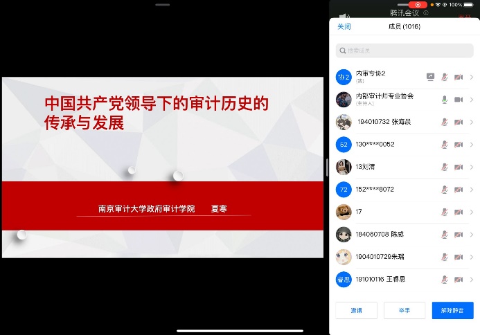 本次讲座的主题是“红色审计与党史学习”。政府审计学院党委书记童瑞连出席讲座并致开场白。夏寒副教授主讲,政府审计学院学生会、内审专协学生干部、20级各班学生代表参加本次活动线下部分。