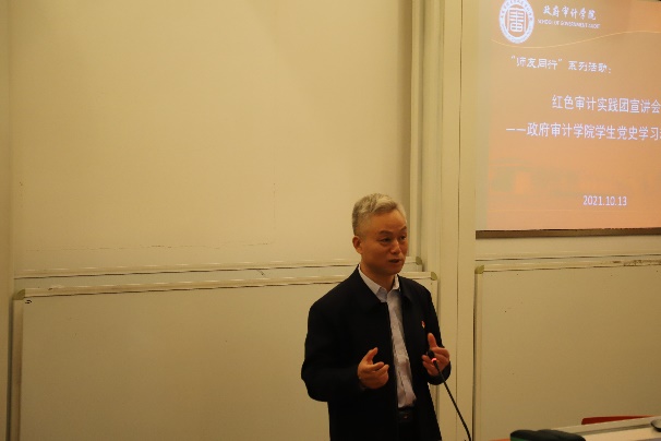 10月13日,政府审计学院举办的“师友同行”系列活动——红色审计实践团宣讲会暨学生党史学习会在敏行102举行。活动开创性地使用线上线下双结合的模式。线上共计1000多位学生参加本次党史学习教育专题讲座。