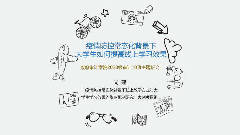 417日下午,2020级审计10班专业班主任周建老师给全体同学召开了一场以“疫情防控常态化背景下如何提升线上学习的效率”为主题的线上班会,旨在鼓励班级同学在疫情期间科学合理地安排学习生活,促进良好的身心发展,保证高效的学习效率。