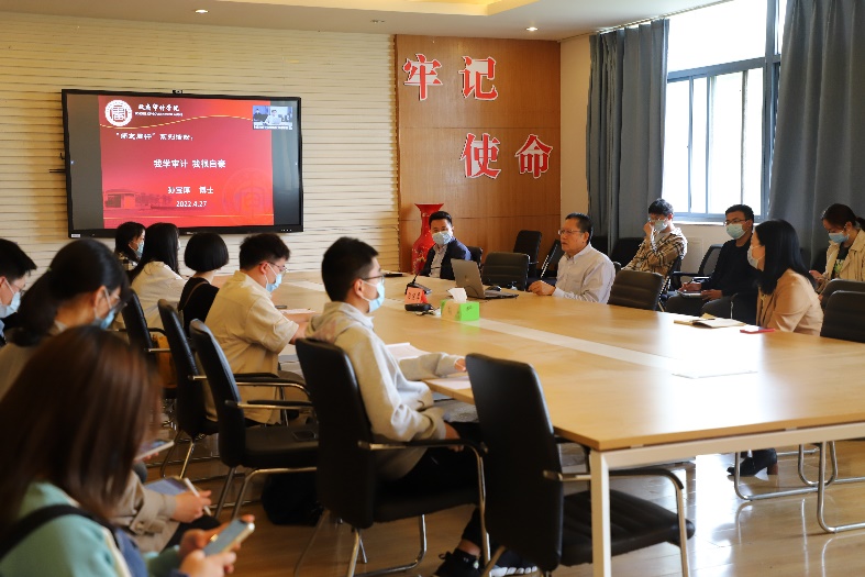 孙宝厚博士从“师友同行”入手,结合他自身学习工作经验,强调精于思考,敢于提问对学习的重要性。整场讲座,孙博士以同学们在学习过程中感兴趣或者疑惑的问题为线索,逐一对大家的问题进行详尽解答。他建议刚接触审计的大一学生要理解掌握审计的基本概念、基本理论、基本方法;建议学有余力的同学多阅读审计署编制的行业审计教材和审计案例;鼓励有条件的同学多阅读其他学科的经典著作,学会融会贯通,善于利用讲座、网课等各类资源积极主动学习;建议将来立志从事审计工作的同学除了学习主干专业课程,还要特别注重中文、英文、哲学和计算机四类工具性基础课的学习;对尚在升学还是就业徘徊的同学,建议他们合理谨慎评价自己的能力与工作的匹配程度,以及未来职业的需求再做出适合自己的选择。讲座现场,同学们积极与孙博士交流互动,氛围轻松而热烈。