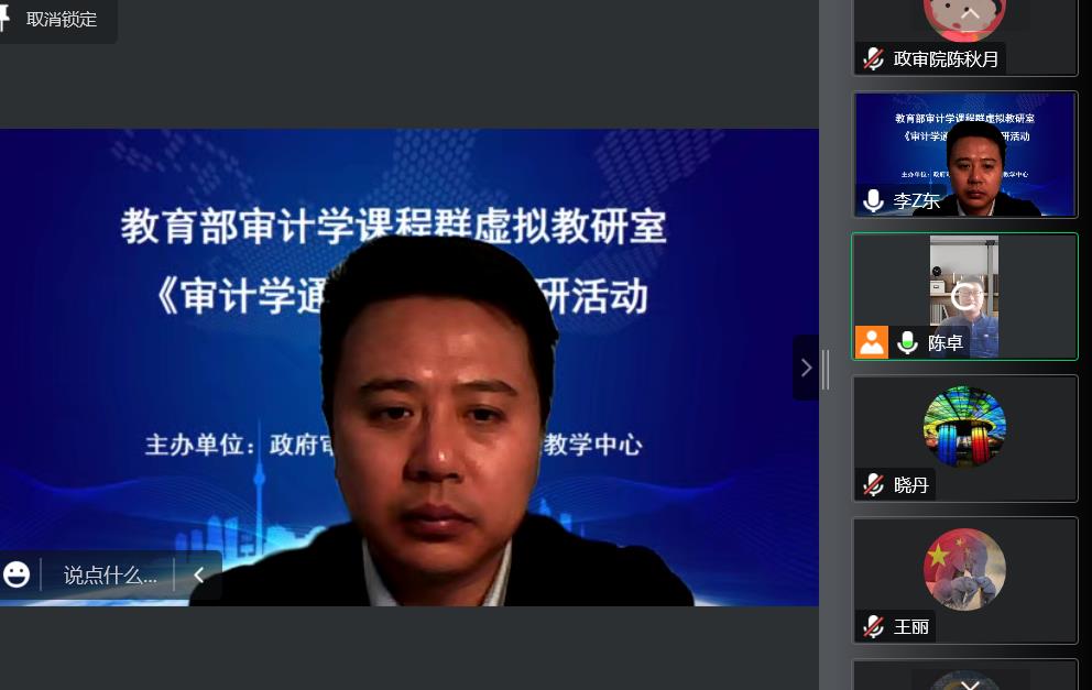 为保证教学质量,提升教学效果,教育部审计学课程群虚拟教研室、审计通识教育中心于11月3日举办《审计学通论》课程期中教学线上交流研讨会,会议由审计通识教育中心副主任陈卓主持,副院长李兆东与承担本学期课程教学任务的全体教师参会。
