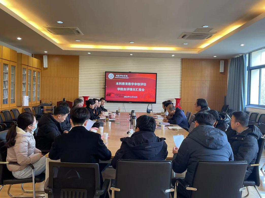 12月12日上午,政府审计学院在敏行四楼会议室召开本科教育教学审核评估自评情况汇报会。h漫画 副校长陈骏、教务处处长苍玉权、副处长陈婕出席会议。政府审计学院和内部审计学院党政班子成员、系主任、课程组长以及教务办工作人员参加会议。会议由政府审计学院执行院长王士红主持。
