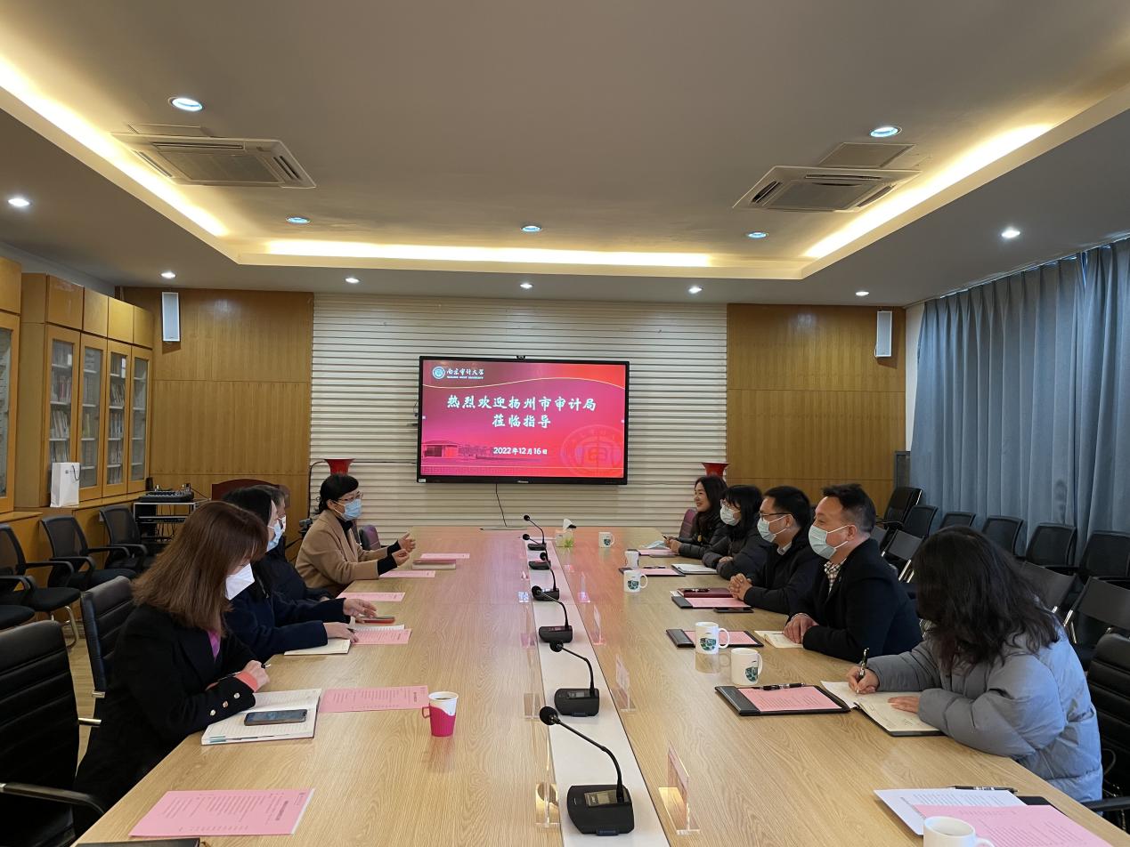 2022年12月16日上午扬州市审计局副局长席向振一行6人来h漫画 对接校地合作事宜。政府审计学院院长周维培、执行院长王士红,国际学院副院长张文秀参加座谈会,会议由政府审计学院党委书记李海燕主持。