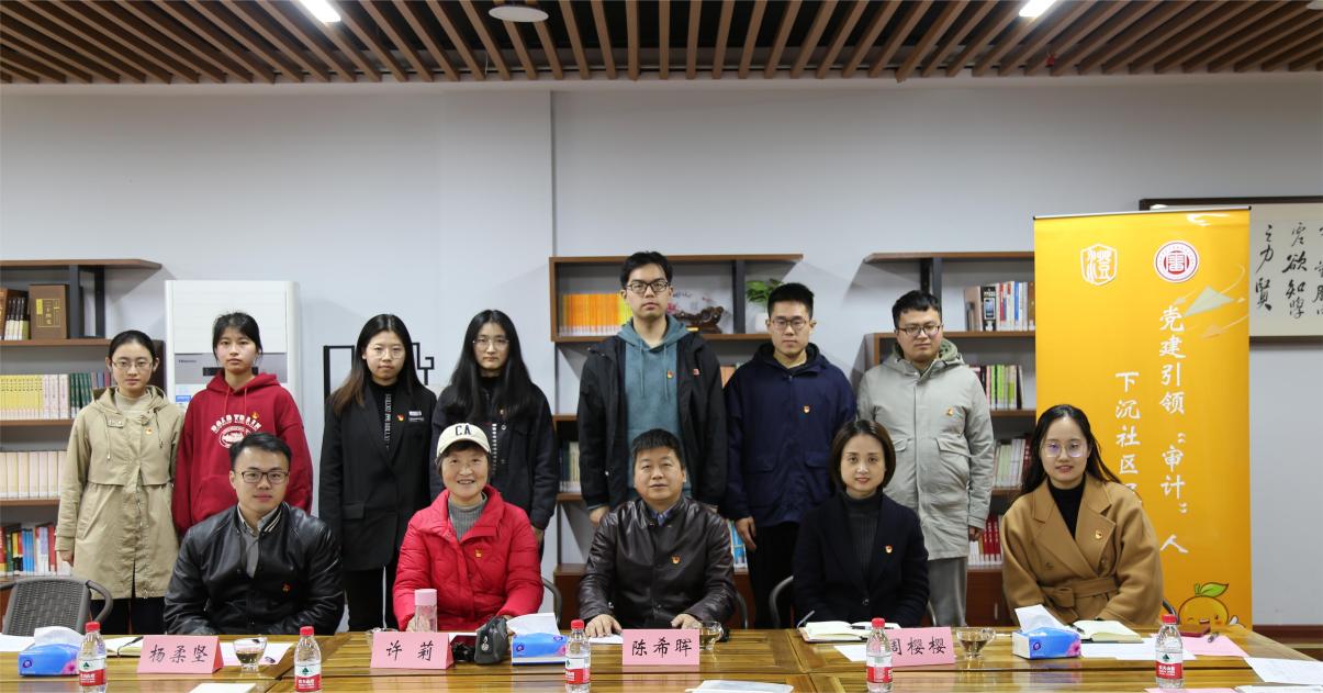 为深入学习贯彻习近平新时代中国特色社会主义思想,落实立德树人根本任务,全面推进“一站式”学生社区综合管理模式建设,3月16日下午,政府审计学院教工第二党支部与澄园书院学生第一党支部在澄典书屋二楼开展“党建引领‘审计’人,结对社区促‘澄’才”联学共建系列活动第一期。澄园书院党委副书记周樱樱、党建办主任张乃华、政府审计学院许莉教授、陈希晖副教授、杨柔坚副教授参加,双院联动共同指导学生。支部在校毕业生党员参加学习,本次活动由澄园书院学生第一党支部书记华诗涵主持。