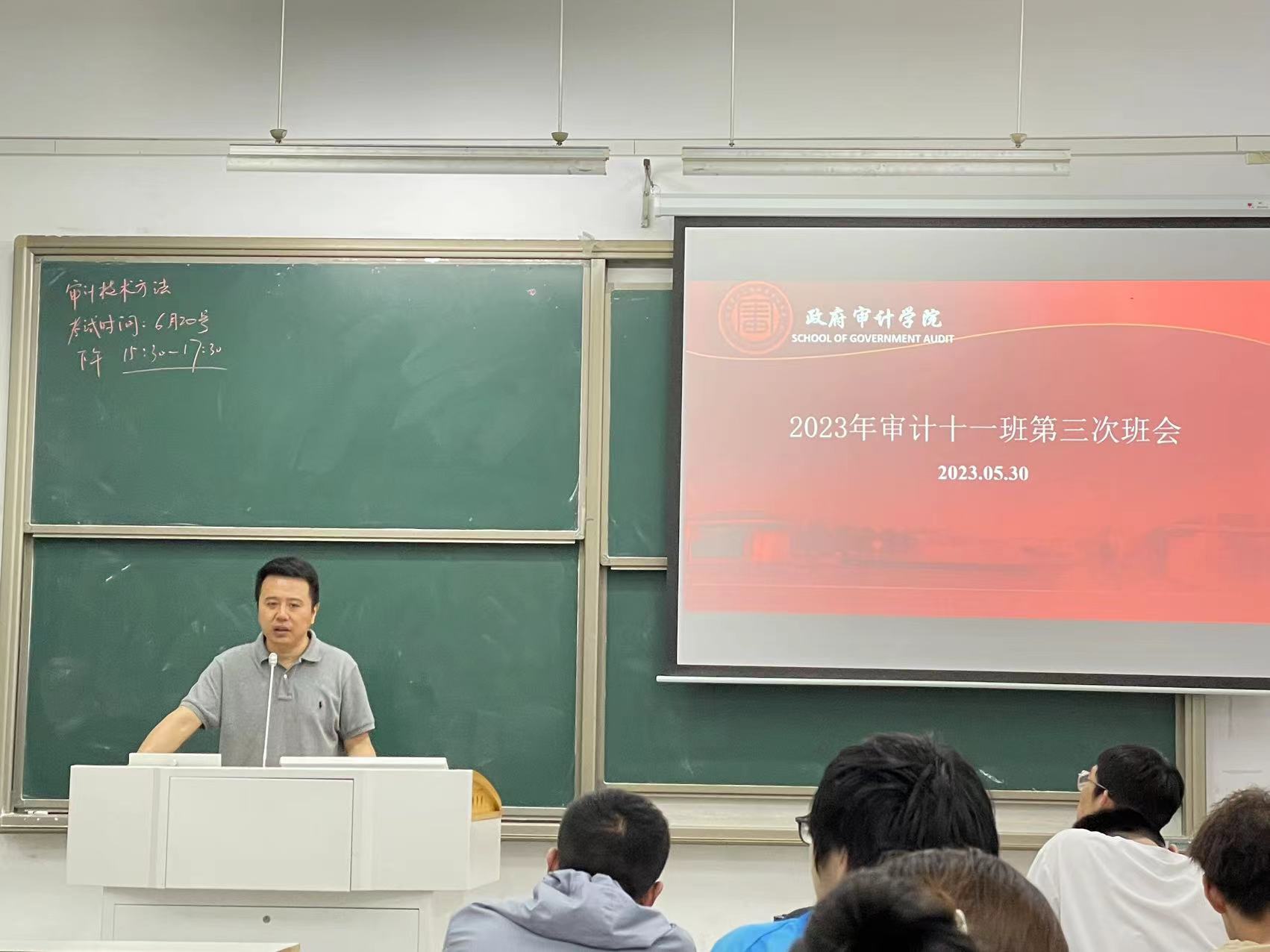 5月30日,政府审计学院2021级审计11班(资源环境方向)召开了2022至2023学年的第三次主题班会,本次班会由审计11班班导师李兆东教授召集,审计11班全体同学参加此次班会。班会以“资源环境审计未来职业发展方向及职业规划答疑”为主题,旨在帮助同学们更深层次的了解本专业未来的就业前景,以便更好地确定自己未来的职业发展规划。